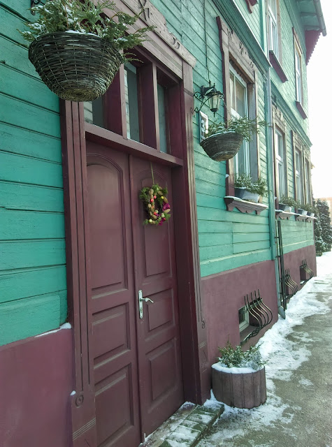 tiek, piemēram, pretējā mājās. Nofotografēju dēļ augšmalas rotājuma.
